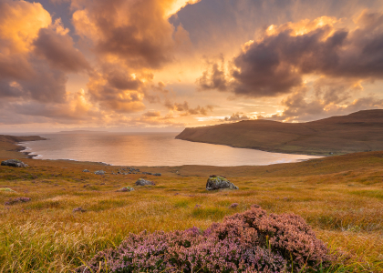 布里特尔峡谷里生长的帚石楠花, 斯凯岛, 苏格兰