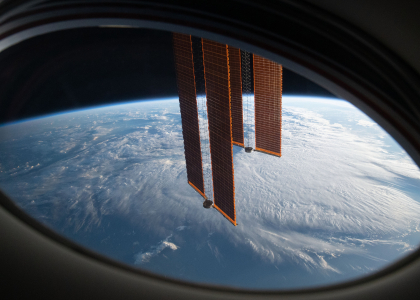 从SpaceX载人龙飞船“奋进号”视角看到的国际空间站主太阳能电池阵列