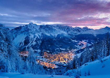 巴伐利亚阿尔卑斯山脉的雪中教堂与圣诞树,德国