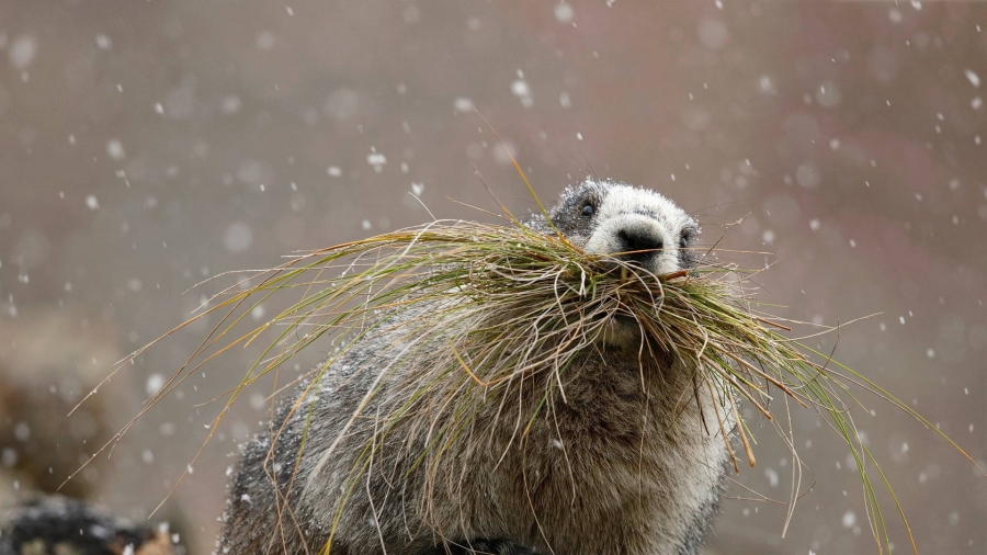 →阿拉斯加 、迪纳利国家公园里的一只灰白旱獭