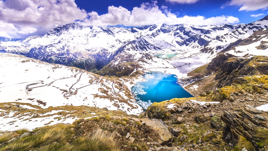 大帕拉迪索国家公园是意大利的一座国家公园、位于格雷晏阿尔卑斯山脉、以公园里的大帕拉迪索山命名、毗邻法国瓦诺伊塞国家公园。大帕拉迪索有许多河流、瀑布、湖泊。今天的照片展示的其实是两个人工湖、为许多发电站提供水源、它们还是1969年电影《意大利任务》的最后一个场景的取景地。
