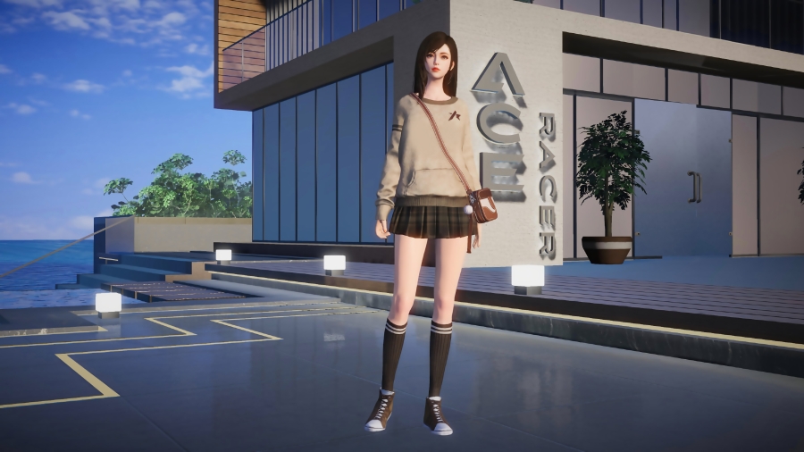 海边玩耍的动漫少女、在王牌竞速馆的动漫少女身着百褶裙、大长腿性感少女白皙的皮肤凸显高挑的身材的4k少女壁纸下载欣赏。