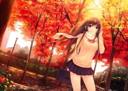 火烧云下的动漫女孩、毛巾围脖的艺术女生唯美8k动漫壁纸