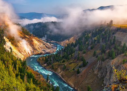 方解石温泉区和黄石河,黄石国家公园,怀俄明州,美国