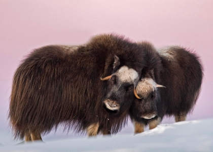 多弗勒山-松达尔国家公园的麝牛与她的宝宝、挪威