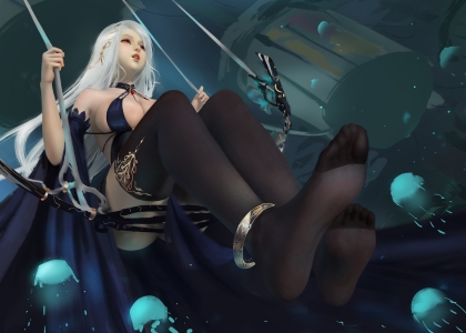 荡秋千的动漫美女黑丝袜大奶很吸引、白发飘飘的动漫美女4K动漫壁纸下载