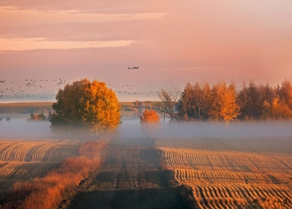 罗马尼亚 、薄雾笼罩的特兰西瓦尼亚乡村