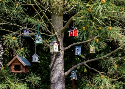 挂在树上的小鸟舍