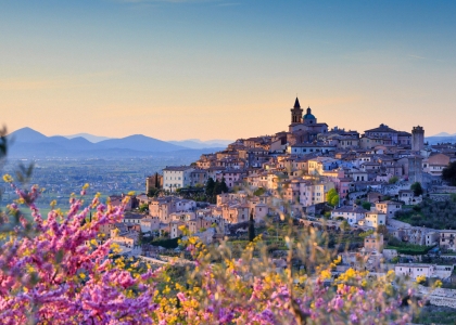 俯瞰着特雷维的扁桃花、意大利佩鲁贾
