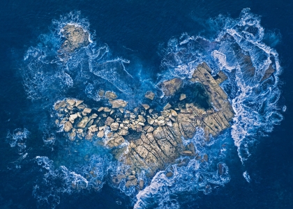 海浪冲击着悉尼海岸的一个心形岩石岛、澳大利亚