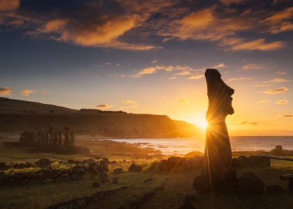 阿胡汤加里基的日出、拉帕·努伊国家公园、复活节岛、智利