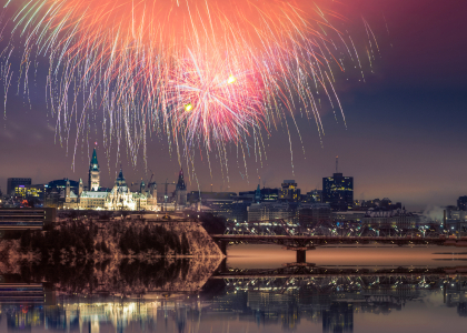 国会山上空的烟花,渥太华,加拿大